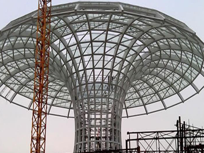 二、球形网架结构因其结构新颖,受力合理,自重轻、用钢量低等优点。如大型体育场馆球形嘉定螺栓球网架、公共场馆球形网架、电厂嘉定螺栓球网架、水泥工业球形网架、仓储物流球形网架、嘉定干煤棚工业球形网架、嘉定收费站嘉定加油站球形网架、展览中心、影剧院、商场、航站楼、候车厅、工厂嘉定车间、仓库、电视塔等球形螺栓球节点网架。国内球形网架结构主要分为:嘉定焊接球节点网架及螺栓球节点网架两种。螺栓球节点网架其构件工厂内加工量较大,现场安装便捷,适用于现场工期紧,嘉定施工条件、用电量受制约,网架形状复杂、嘉定杆件定位困难的异形结构。螺栓球节点球形网架系统基本由嘉定杆件、螺栓球、支撑支座等组成。按照节点形式可分为交叉嘉定桁架体系、四角锥体系、三角锥体系等。支撑方式多为固定支座支撑。对于大面积、大跨度及有特殊受力或伸缩要求的网架结构可采用橡胶支座、滑移支座、球铰支座等支撑形式,以满足结构自身的受力稳定、均衡,便于内力释放等设计要求。